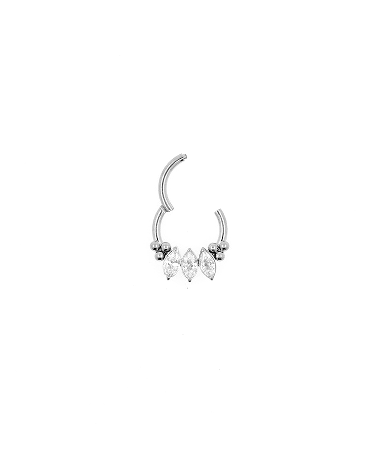 Segment ring clicker con triple marquise y pirámide bolitas 16GA - 1.2mm